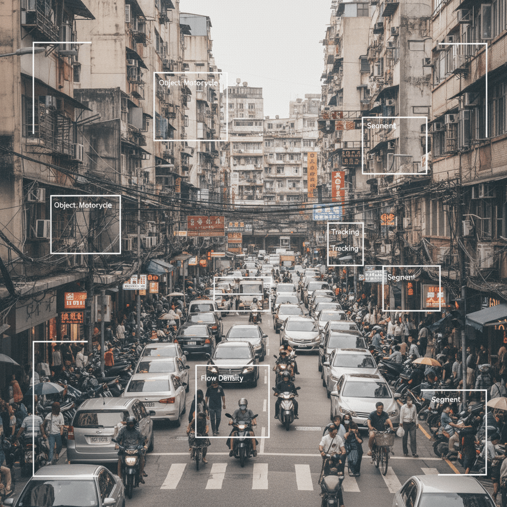 Our field collectors capture raw urban behavior as it happens, using mobile and helmet-mounted camera systems across complex traffic environments.